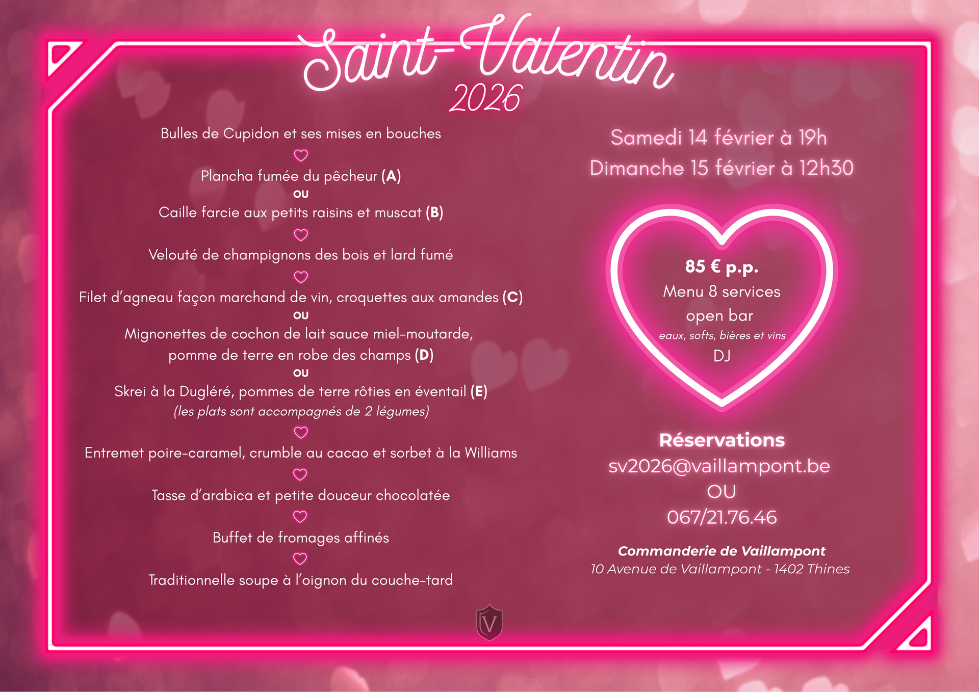 Vous retrouverez sur cette page nos prochains évènements particuliers (Nouvel An, Saint-Valentin, etc.)